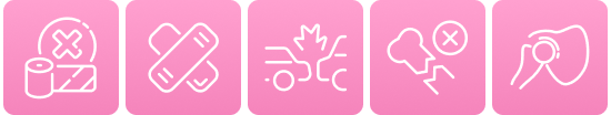 スポーツ外傷や日常生活でのケガ、骨折、脱臼(応急処置)、捻挫、打撲、筋、腱等の軟部組織損傷など。